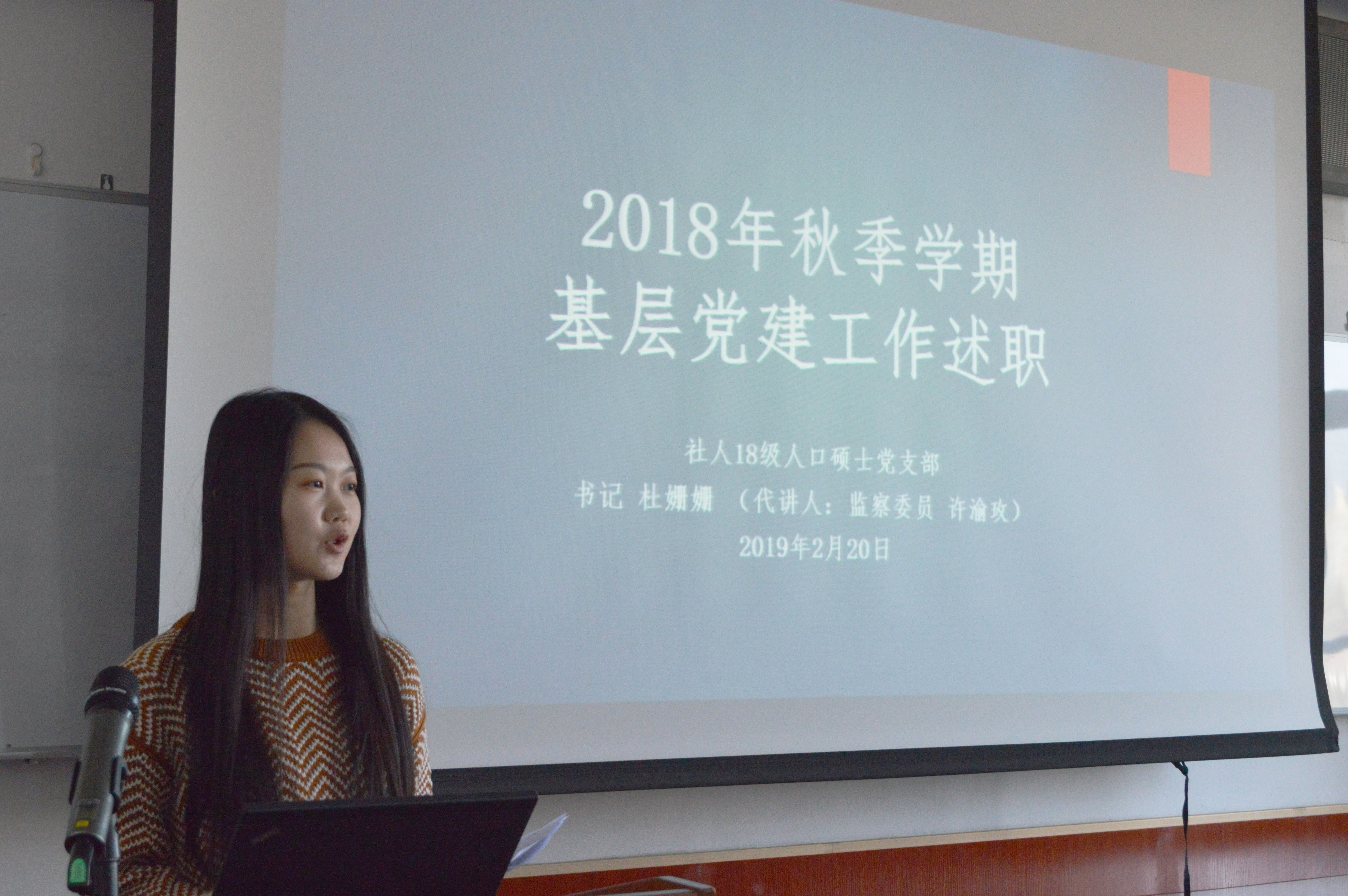 (2018级社会工作硕士党支部俞筱雯进行述职)