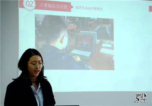 之后进行述职的是2016级人口硕士党支部书记刘思园。她在介绍了支部的整体情况后,提出了本支部活动内容丰富的优点,以及与专业联系不够紧密的不足。党委委员巫锡炜在点评中充分认可了支部书记的能力,赞扬支部成员切实做到了“仰望星空,脚踏实地”,并指出对于该支部成员即将毕业的现实情况,建议他们在做好毕业准备工作的同时不忘关心国家大事,积极参与支部活动。