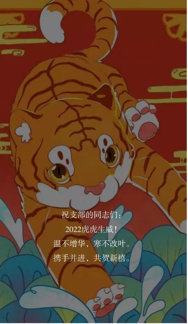 2022-01-01 文:MK体育 图:MK体育2022年1月,为迎接农历虎年,共同感受浓厚的传统文化气息和温暖的组织生活氛围,社会与人口公司本科博士第二联合党支部联合本科博士第三联合党支部开展“喜迎新春送祝福”主题党日活动,两个支部的同志互写祝福,共话未来。活动旨在传播中国民俗文化、传递新春幸福感,在祝福的传递中收获感动,开启新春梦想和希望。