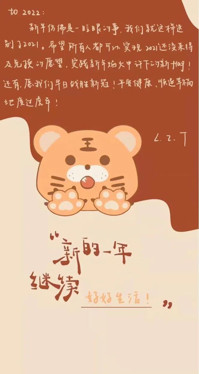 支部党员们手写新春祝福,以照片或视频的形式献上新春祝福。三支部的刘芷桐同志的新年祝福语这样写道“愿我们早日战胜新冠、平安健康、顺遂幸福地度过虎年!”,三支部的晏雨琦同志祝福大家:“大家新年好呀!祝大家新的一年平安健康,万事胜意,天天开心!”二支部的管晓方同志写道“希望同志们在新的一年能以虎虎生威的雄风、生龙活虎的干劲、气吞万里如虎的精神共谱新篇,不断向前!”。
