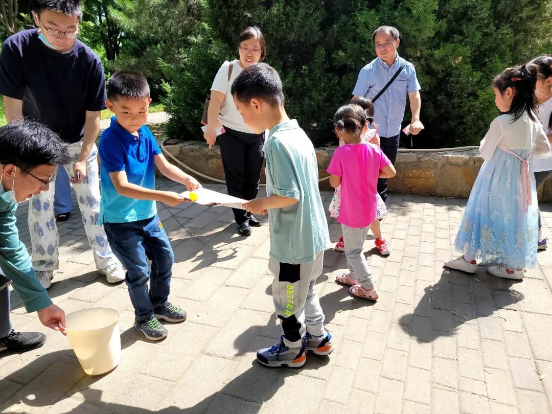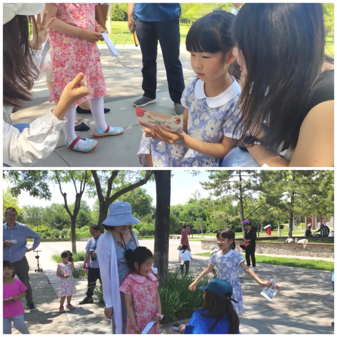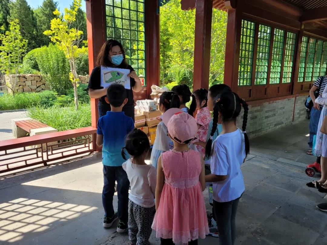 6月6日上午九时,教职工和小朋友们来到了本次活动的举办地——北坞公园,并在“北坞八景”中的“高湖塔影”集合。活动主持人首先对本次游园会的活动安排进行了介绍,在主持人的引导下,小朋友们进行了简短的自我介绍并互相认识,随后自由组队参加通关游戏。
