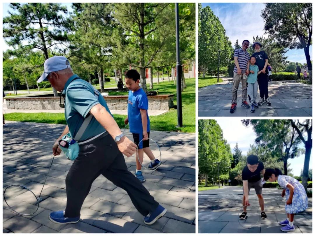 第四个游戏是滚铁环。为了帮助孩子们顺利完成任务,家长和志愿者们一起上阵,手把手地教小朋友们滚铁环。这个游戏唤起了家长的童年回忆,也增进了小朋友们对父母童年生活的了解。