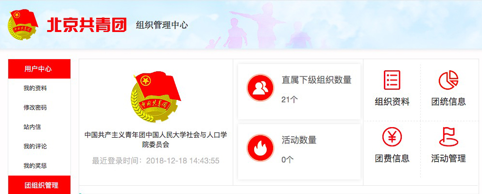 团委组织部依旧积极发挥该其联系各团员与各部分、协调组织各部门工作的作用,很好完成其统计团情、收缴团费(哈!)、传达信息、协调沟通的常规任务。成员们积极联系各支部,统计各年级各个支部的团干部、团员人数和其他团员的具体信息,帮助其他部门完成工作。大家的“青春北京”还有共青云系统都是由我们来负责统筹哟!