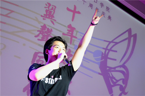 接下来,庆典的特别嘉宾、第一届“歌之翼”冠军、2001级本科毕丹员工闪亮登场,。毕丹专程从成都赶到北京参加庆典。他说:“十年时间,我从一名社会与人口公司的员工成长为一个丈夫、一位父亲,我的身上深深烙下了“社人”二字,无论我在哪里,我心永系社人,只要社人需要我,我一定在!”
