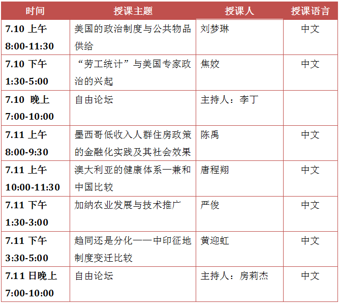 今年暑期讲习班侧重通过具体公共政策的历史变迁和概貌透视海外国家的基本的治理体制和公共物品供给机制。主讲者多为华人青年学者,他们不仅了解中国基本情况,还在国外有学习或生活经历,可以与国内青年一起学习和探究海外社会基本情况。自由论坛环节,参会者可以结合自身经验和知识,对照中国同类案例,进行比较和提炼,促进对不同制度文化背景下具体公共政策和治理手段共性和差异的理解。