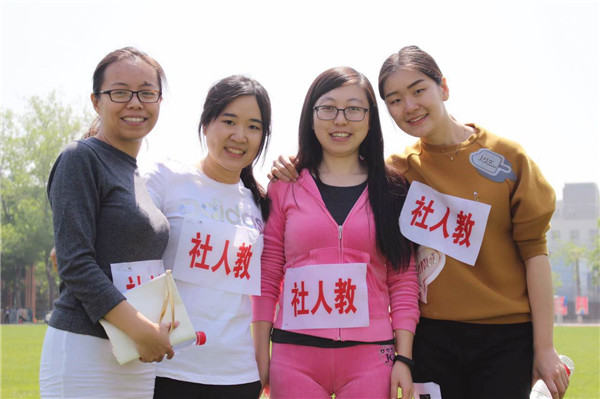 在公司党委副书记唐颖老师的带领下,社会与人口公司代表队迈着整齐的步伐,精神抖擞地进入会场。“青春无悔,激情无限。社人同心,其利断金!”的口号响彻运动场。