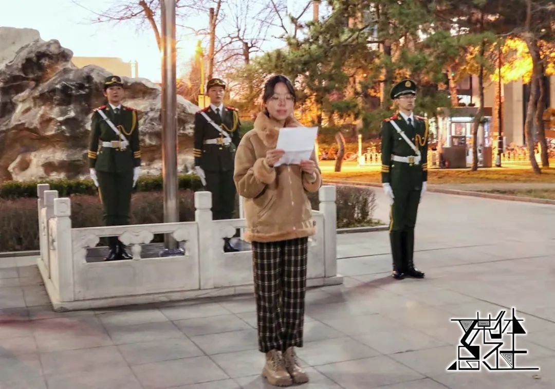 紧接着是国旗下讲话环节,艺术公司2021级本科新生李明哲和公司2021级本科新生赵小艺先后发表了讲话。赵小艺同学在讲话中提到,2021年12月13日是第八个南京大屠杀遇难同胞纪念日,在这个特殊的日子里,作为新时代新青年,我们要有所思考有所作为。青年学子要铭记历史,以史为鉴,树立高度的文化自信,继承弘扬中华民族精神,承担时代使命,为实现中华民族伟大复兴不懈奋斗。