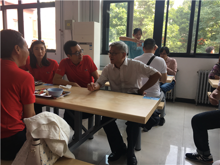 中午12点30分,时任教师、现MK体育官网党委常务副书记张建明教授与员工共进午餐并合影留念。