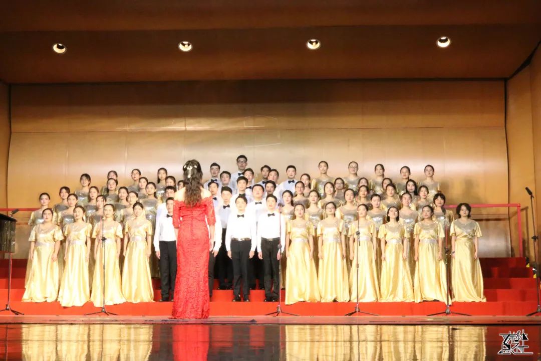 受到了他们高涨热情的感染,合唱团的同学们都展露出最灿烂的笑容。如水般空明澄澈的钢琴伴奏响起,演出开始了。首先展露在观众们面前的是是男高与女高声部对祖国深情的告白,“那是从天上采下的虹”,“一张天下最美的脸”,表达出了社会与人口公司的每位同学对祖国母亲的敬慕与热爱。而随之而来的“五星红旗,我为你骄傲;五星红旗我为你自豪”,激昂振奋的呼告打动了在场每位观众的心。自豪与骄傲写在每一位同学的脸上,他们纵情欢呼,为祖国献上祝福。当唱到“你的名字比那生命更重要”时,全场的气氛达到了高潮。所有人都陶醉于歌曲美妙的旋律与伟大祖国的深沉魅力之中。