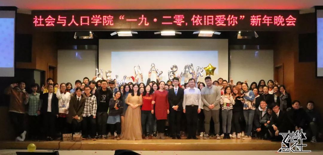 最后,在大合唱《相亲相爱》中,“一九·二零 依旧爱你”2019年新年晚会落下了帷幕,同学们合影留念。流年易逝,日月其除。作别昨日的欢笑与泪水,我们昂首向前,共同迎接新年的到来。祝愿各位同学在新的一年里乘风破浪,只争朝夕,播下汗水,收获希望。2020,社人大家庭依旧爱你。