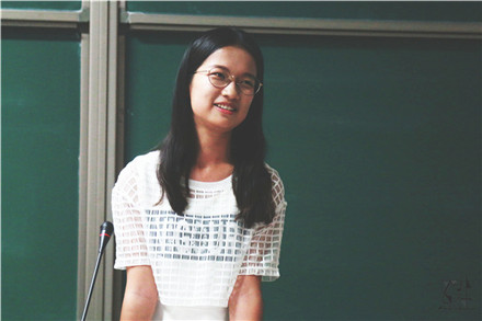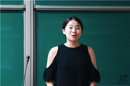 2015级本科生林钰芳介绍了分团委办公室、组织部、素质拓展中心及学术实践部四个部门,分享了自己一年来在团委的收获,并向大一新生伸出橄榄枝,欢迎他们的加入。