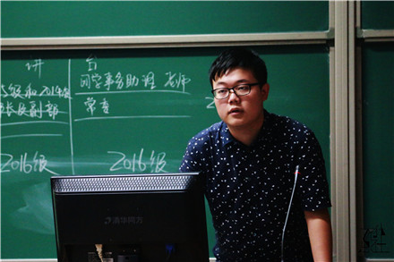 “心语”青年志愿者协会朋辈项目部部长裴彧对青协各部门做详细介绍。裴彧说道:“青协是一个充满活力和温暖的大家庭。温暖需要传递,欢迎加入青协。”