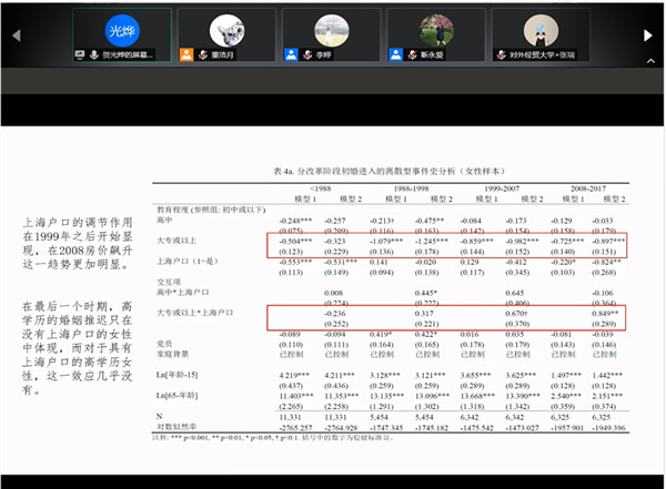 此次讲座拓展了师生们对教育程度与婚姻关系研究的视野,了解到户口对于婚姻的重要影响,对师生们研究婚姻问题具有深刻的启示意义。