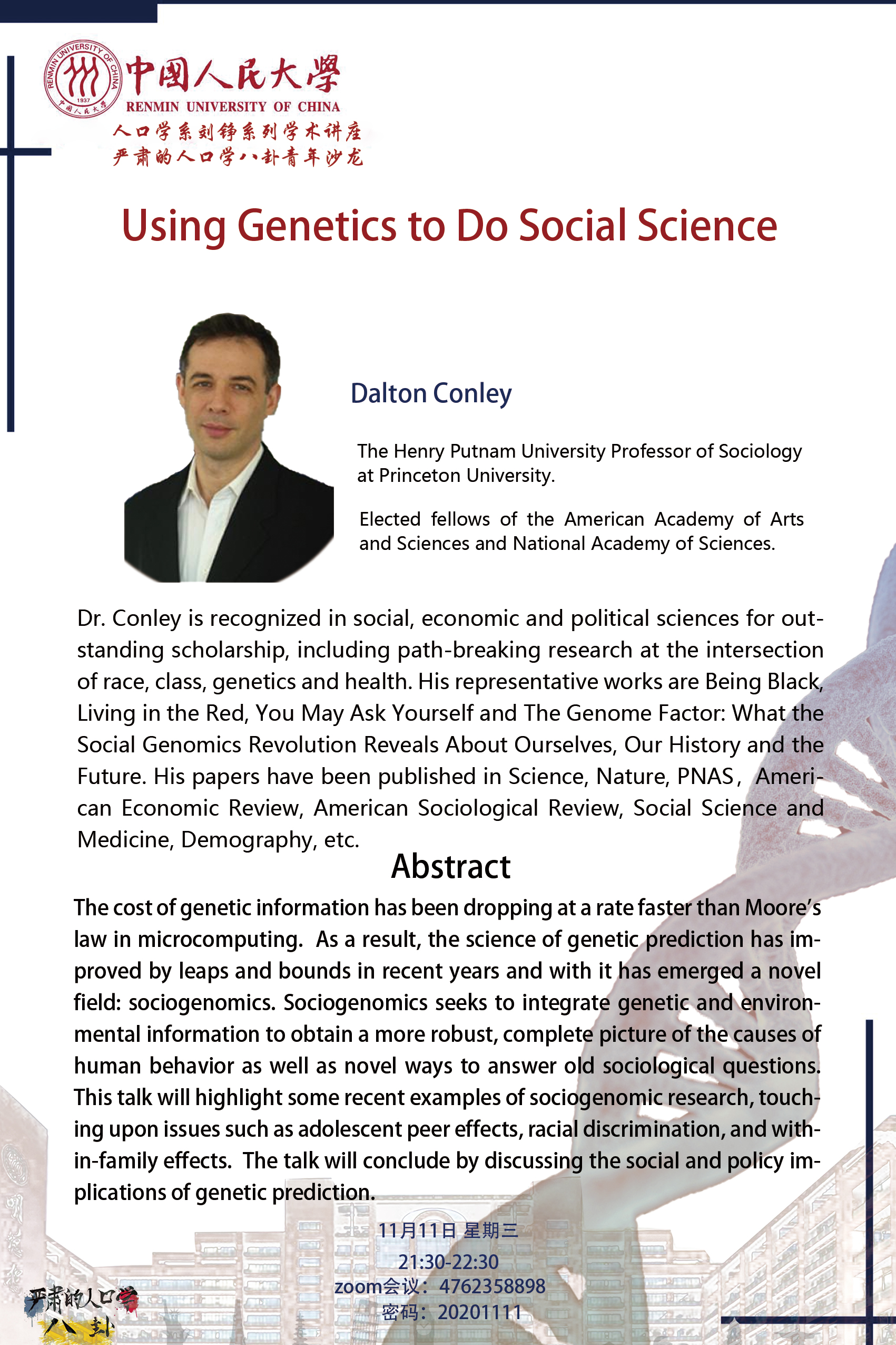 讲座预告 | Dalton Conley:Using Genetics to Do Social Science