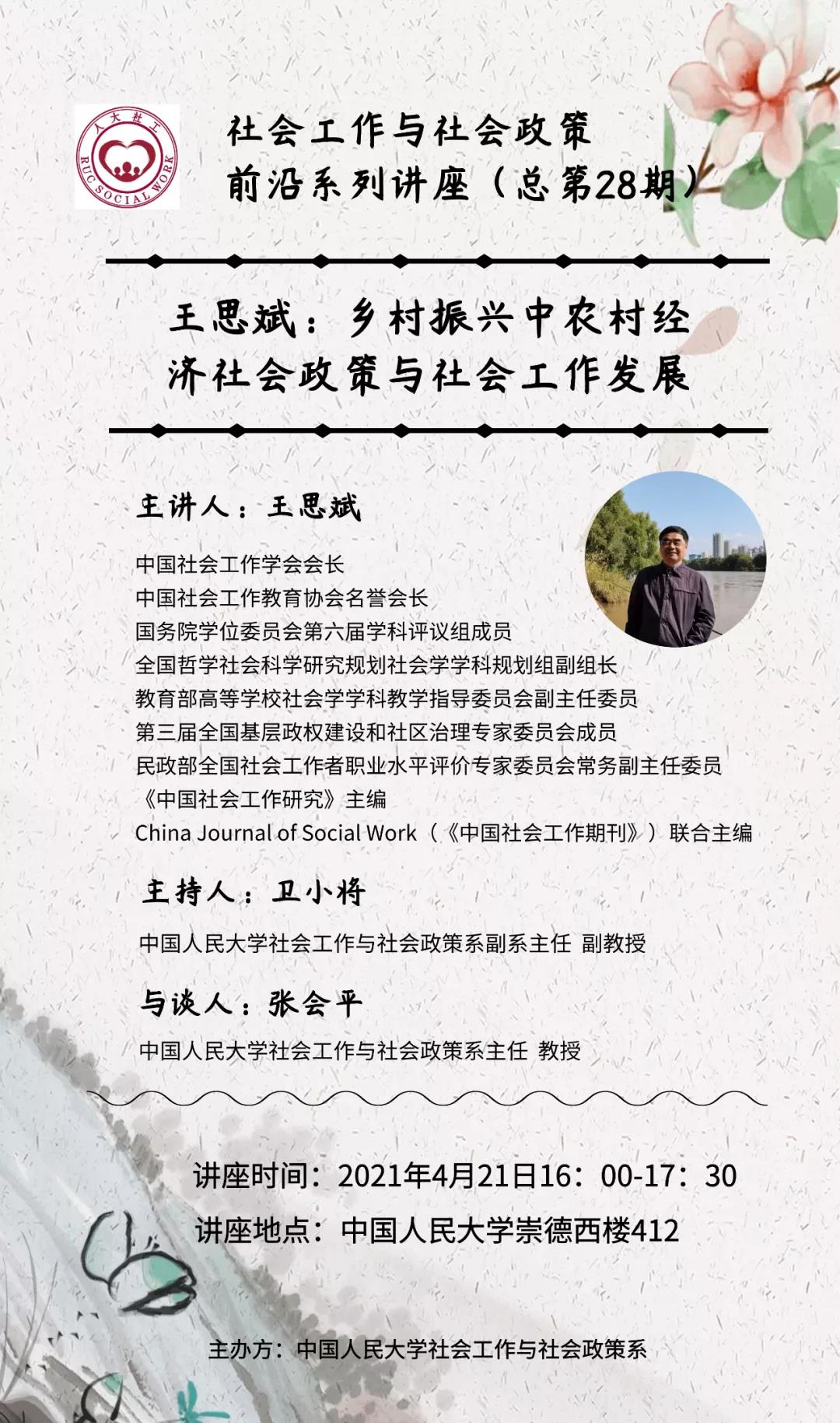 讲座预告 | 王思斌:乡村振兴中农村经济社会政策与社会工作发展