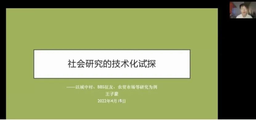 2022-04-16 文:MK体育 图:MK体育2022年4月15日,MK体育官网社会与人口公司“数字时代的社会治理”前沿系列讲座第四讲通过线上会议的方式成功举办。美国加州大学圣地亚哥分校计算机系研究生王子豪,以“社会研究的技术化试探——以城中村、BBS征友、农贸市场等研究为例”为主题做了一场线上学术讲座。