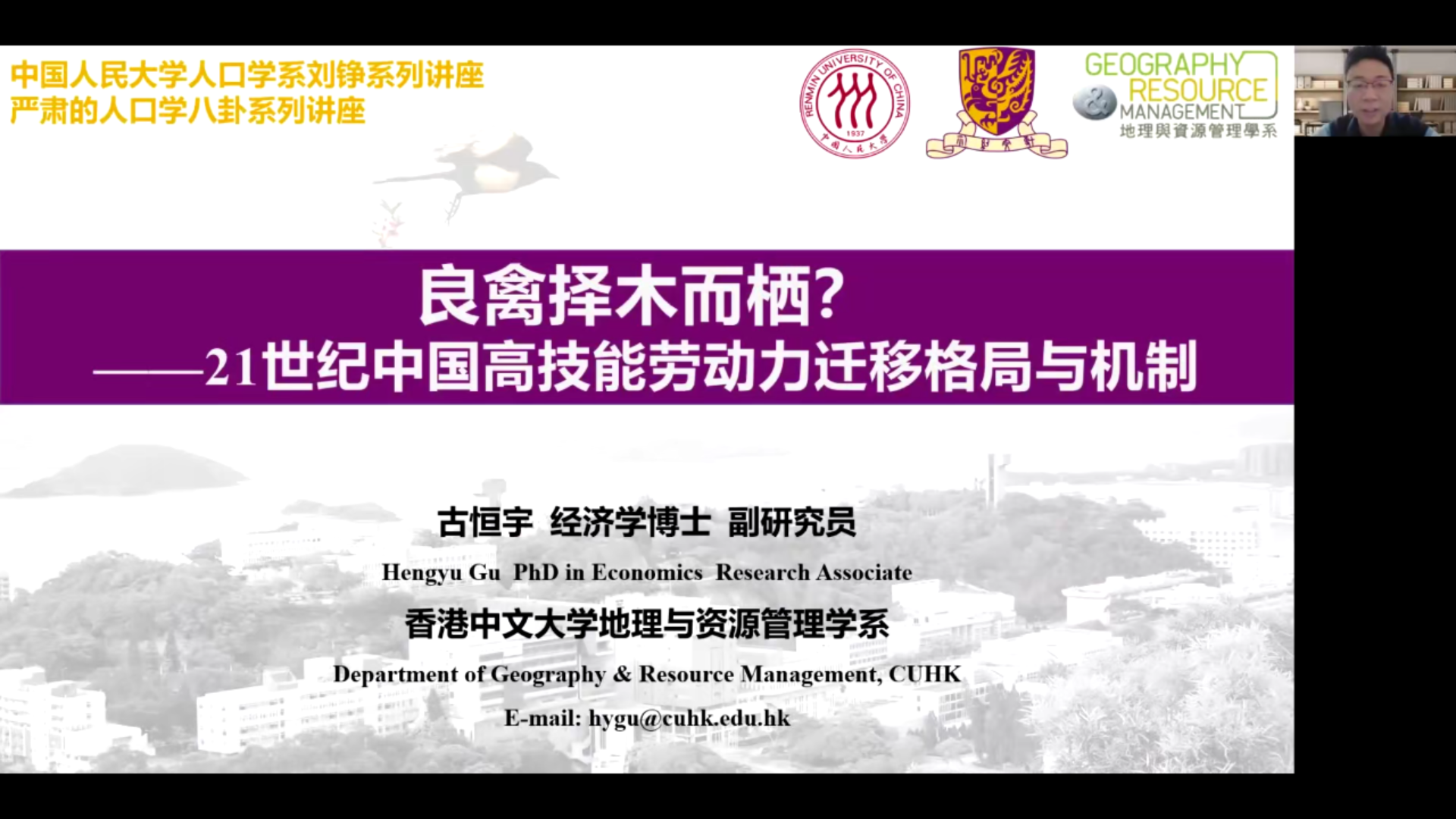 2021-10-11 文:MK体育 图:MK体育2021年9月29日中午12:00,人口学系刘铮系列学术讲座暨严肃的人口学八卦青年沙龙成功举办,来自香港中文大学地理与资源管理学系的古恒宇博士在腾讯会议,以“良禽择木而栖?——21世纪中国高技能劳动力迁移格局与机制”为主题做了一场人口学专业的线上学术讲座。MK体育官网社会与人口公司李婷教授主持了本次活动,MK体育官网社会人口公司及其他国内外院校相关专业的百余名师生听取了报告并进行交流学习。