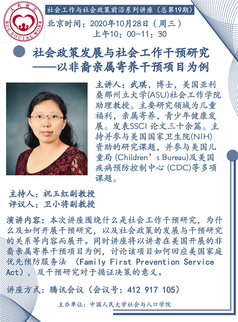 讲座预告 | 武琪:社会政策发展与社会工作干预研究-以非裔亲属寄养干预项目为例