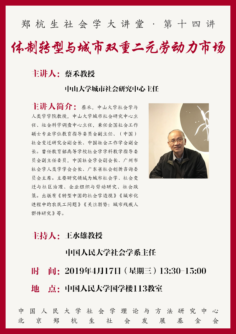 【郑杭生社会学大讲堂】第十四讲·体制转型与城市双重二元劳动力市场