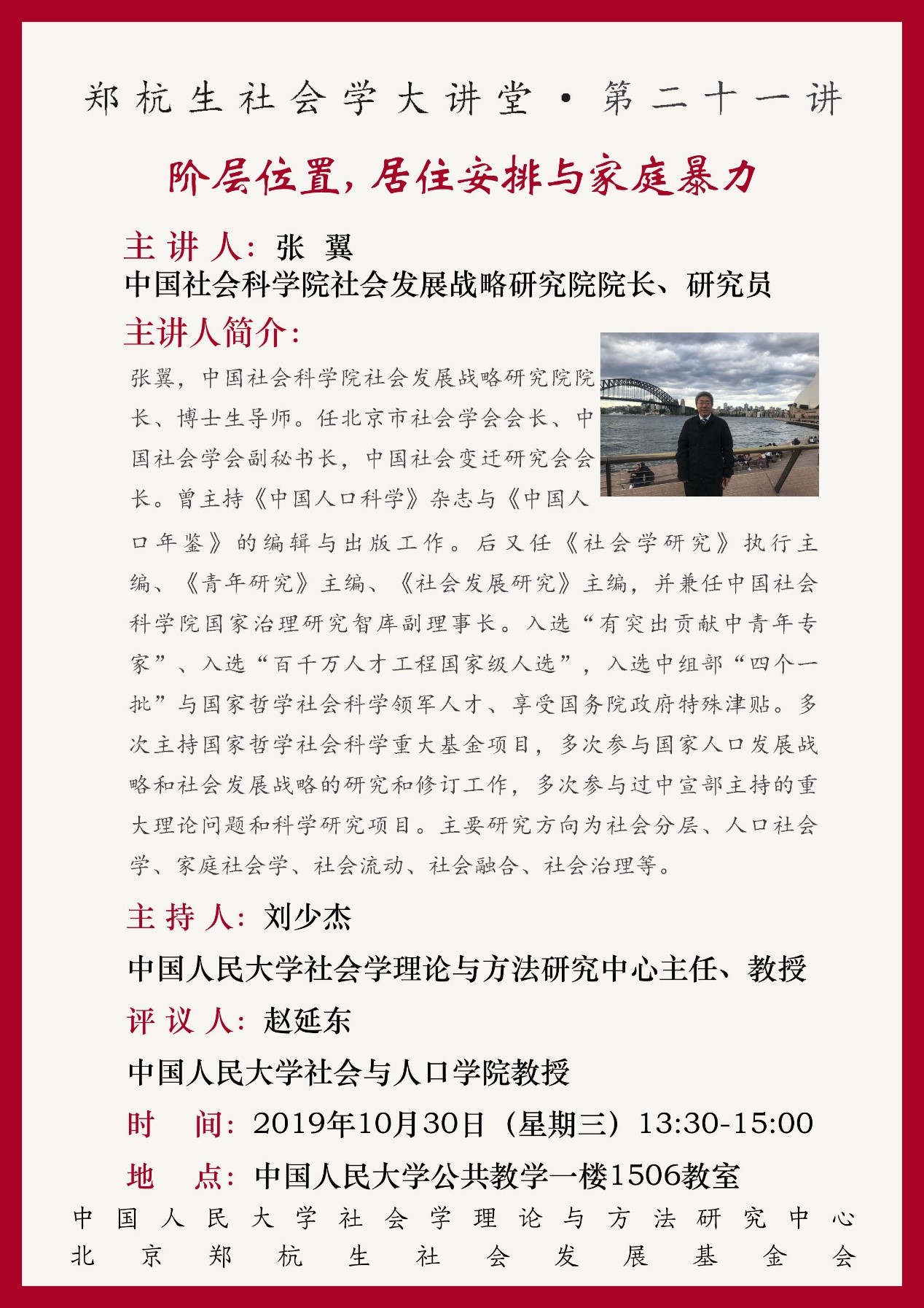 【郑杭生社会学大讲堂】第二十一讲:阶层位置,居住安排与家庭暴力