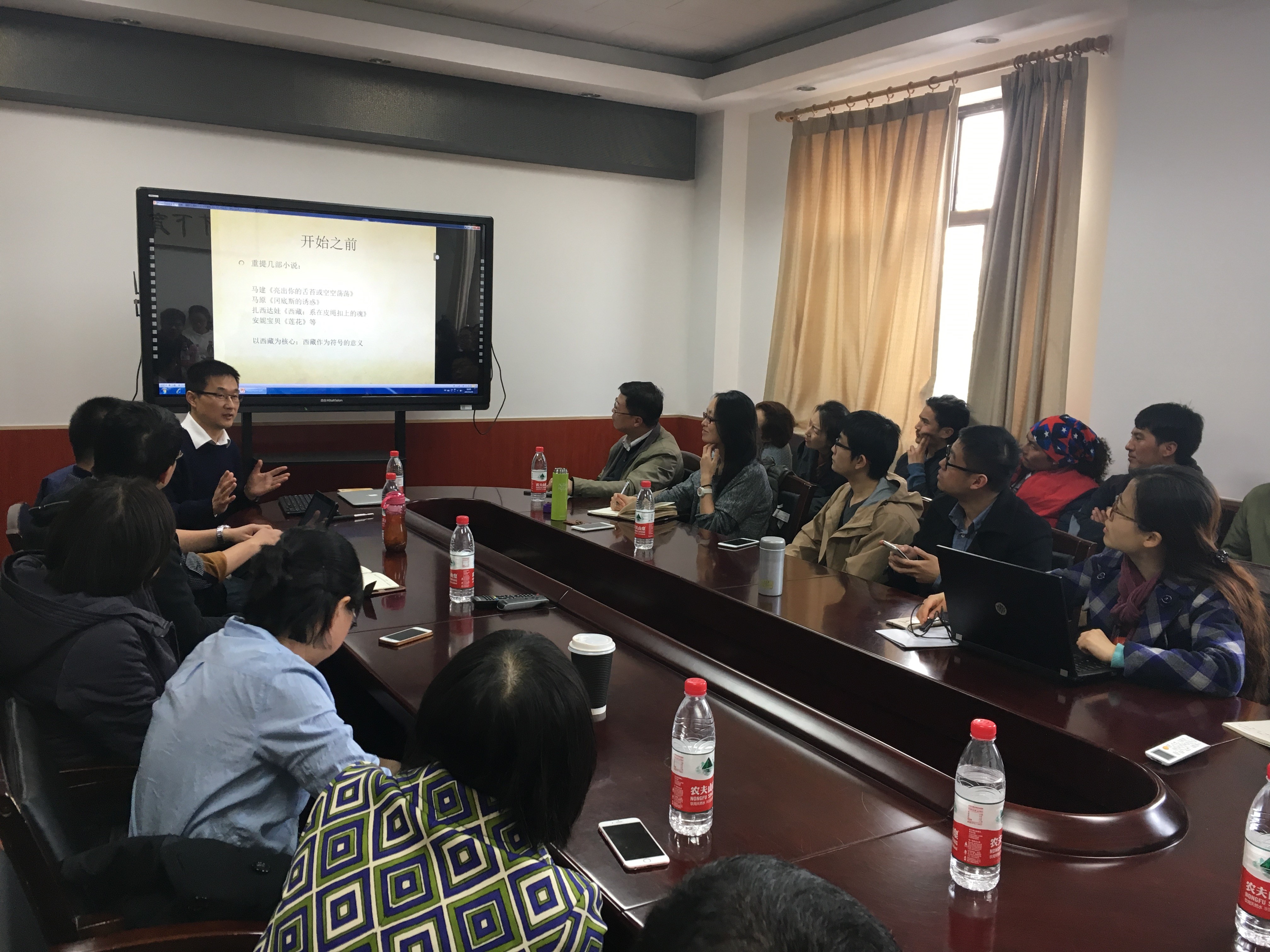 郑老师的研究激发了在场老师同学的浓厚兴趣,双方进行了热烈的讨论。王水雄老师认为郑老师的方法代表了人类学方法的前沿、是一种新的探索和尝试,但应更注意阐述清楚作者与阿来、阿来与藏人之间观点的界定和区分。会议还吸引到了很多校内外的藏族同学,他们结合自身生活经验与思考,与郑老师展开了深入的思想交流,郑老师指出现在的民族分类固然存在不足,但是不同民族之间的边界其实没有那么模糊,文明的交流是现代民族国家一种可能的出路。