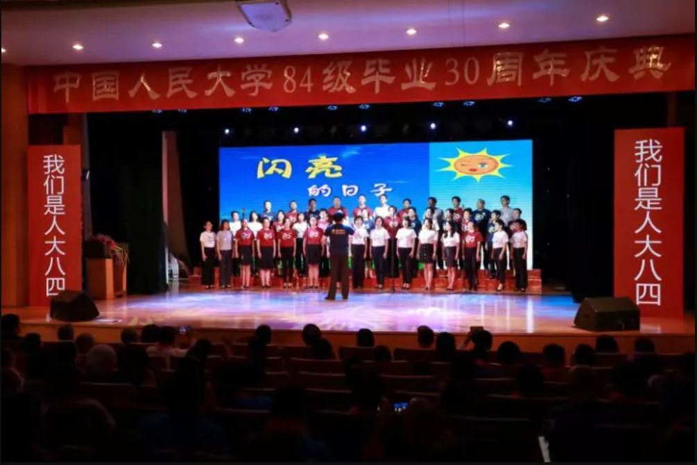 此后,84级毕业三十周年返校典礼和文艺节目表演在八百人大教室举行,精心准备的节目精彩纷呈,气氛欢快活泼;94级员工则参观校史馆、游览校园、在校内摄影留念并且参加“RUC94下一代嘉年华”等活动。下午2点,公司领导在明德堂贵宾室会见94级和95级员工代表。