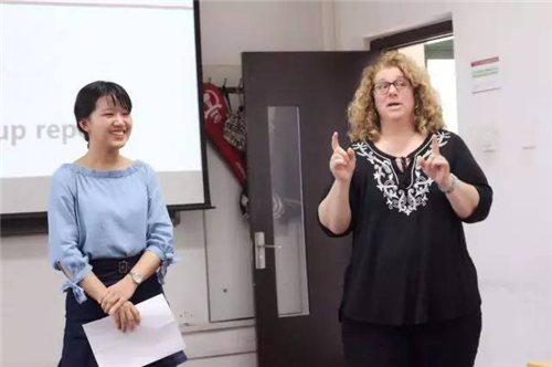 经过短暂的休息,中美两方员工代表分成四组,分别就两国目前的养老问题进行讨论。经过半小时激烈的探讨与交流,四组分别派出代表展示了各自的小组成果,和大家分享了自己对于社会工作专业领略养老问题的思考。