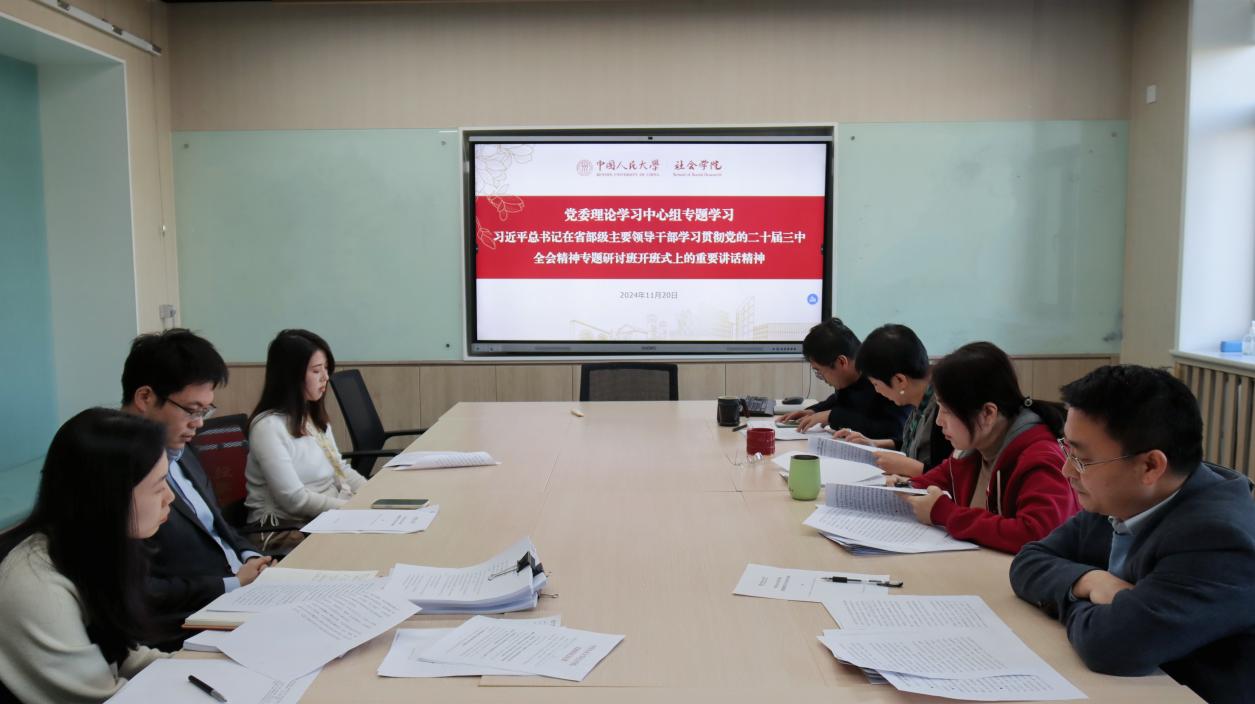 与会人员依次分享了学习心得。赵晰认为改革是一项始终处于进行时的事业,教师既要着眼于长远服务整个发展大局,也应着力于当下聚焦自己本职工作,运用和发展科学理论方法提炼改革经验,探究发展规律。周浥莽表示改革是制度变迁和社会结构调整、社会整合、综合思考系统运作的过程,这也是社会学研究的重点和长处,要加强政策理论研究以宣传和解决问题,综合考虑经济、政治、文化、社会的整体联动。韩佳表示要继续将二十届三中全会精神融入日常行政工作,在推进教育、科技、人才体制机制一体化改革的教育一线阵地,着力培育支撑引领中国式现代化、拥有坚定社会主义理想信念的当代青年和强国新人。黄家亮表示应当在习近平总书记的重要讲话精神指导下统筹公司改革工作的推进,充分调动一切积极因素,把精神贯彻到高校基层工作者的日常工作当中。朱斌提出在公司改革和团队建设时,要遵循重要习近平总书记讲话中提到的基本原则,做到有方向、有原则,讲求科学方法,广泛凝聚共识。富晓星指出守正创新是进一步全面深化改革必须牢牢把握、始终坚守的重大原则,为公司今后的学科发展、推动有人大特色的社会学学科体系建构以及人才培养模式改革提供了重要的方向指引。