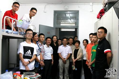 下午三点半,公司经理冯仕政、党委书记兼副经理宋健、党委副书记唐颖、副经理黄家亮、团委书记庄溪瑞以及公司2018级本科班班主任赵梦晗老师、闻翔老师以及新生班级辅导员等人来到公司新生宿舍看望新生。冯仕政、宋健亲切问候新生们的生活,并向同学们介绍了未来的公司生活,教导新生们应讲求独立,致力学习,充实而和谐地度过老员工活。