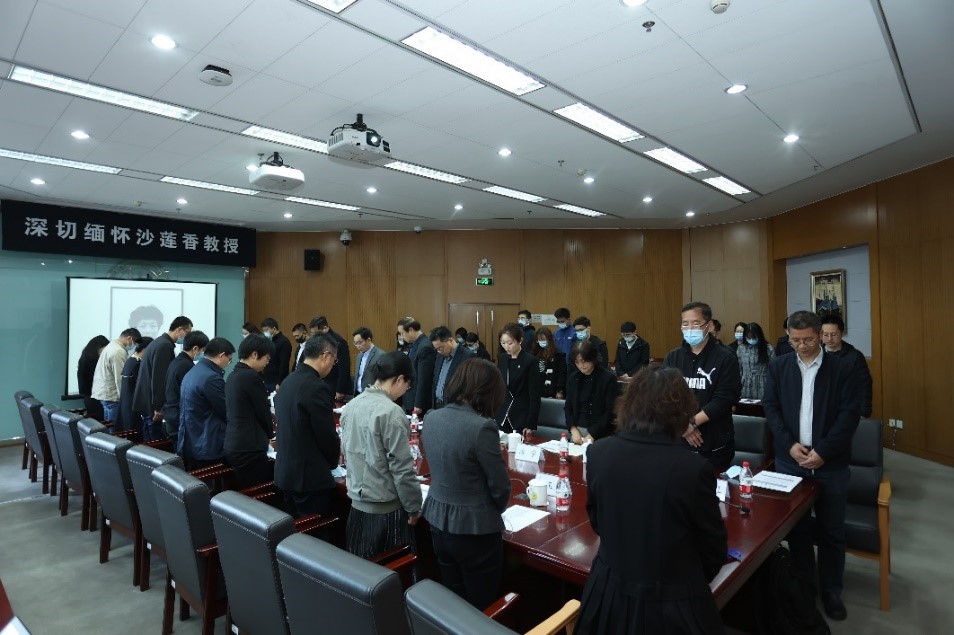 在庄严肃穆的气氛中,全体与会人员肃立为沙莲香教授默哀,并共同观看了沙莲香教授纪念视频,回忆她的生平点滴,沉浸在对这位仁厚师者的深切哀悼之中。