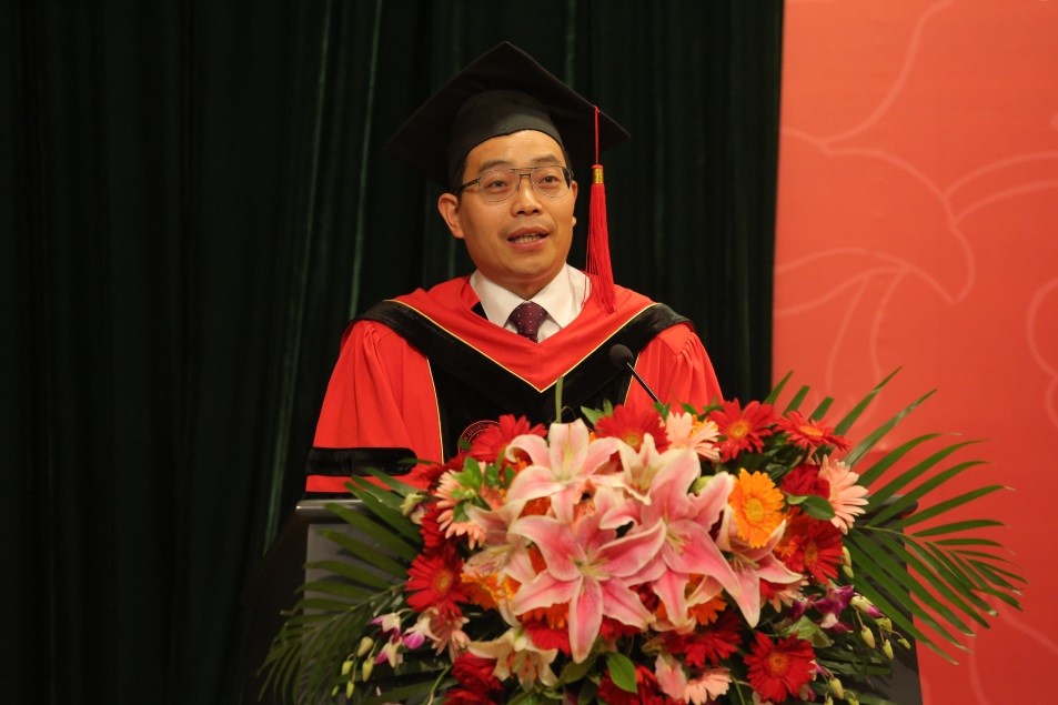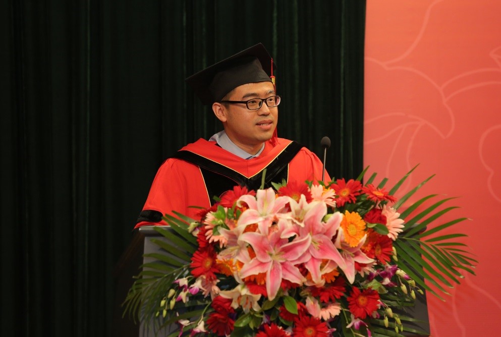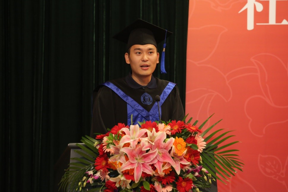 毕业生代表、2017级硕士先虹锦发言。他与大家共同深情回顾了自己的人大记忆,感谢母校带给自己的改变和成长,并祝愿人大永葆青春,全体毕业生能够希望常在,生命常青。