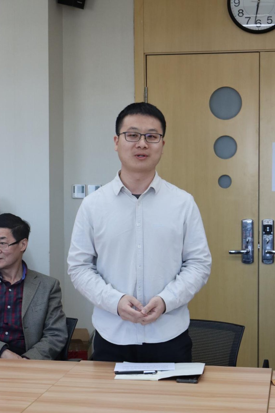 孙权首先向全院介绍公司新入职的两位教职工。新入职的廖越老师和肖怡霏教职工分别做了自我介绍。两位老师表示,非常荣幸能够加入社会与人口公司大家庭,今后将努力工作,为公司发展作出贡献。