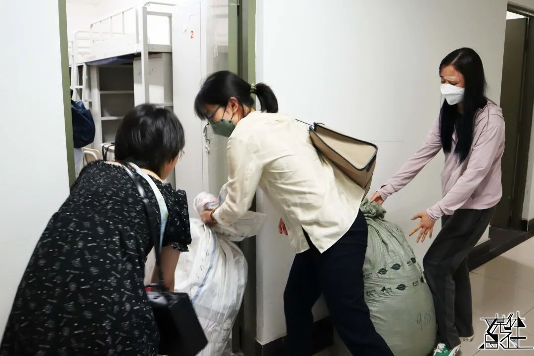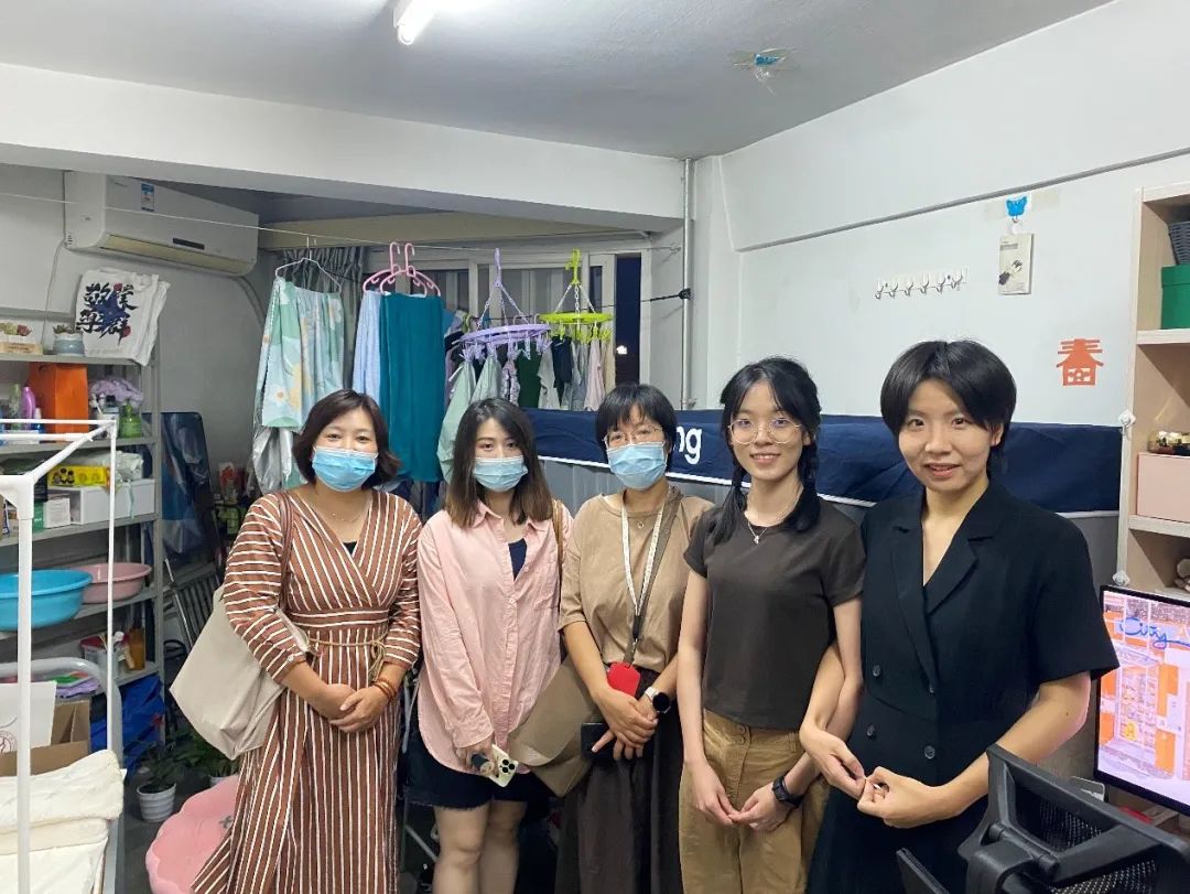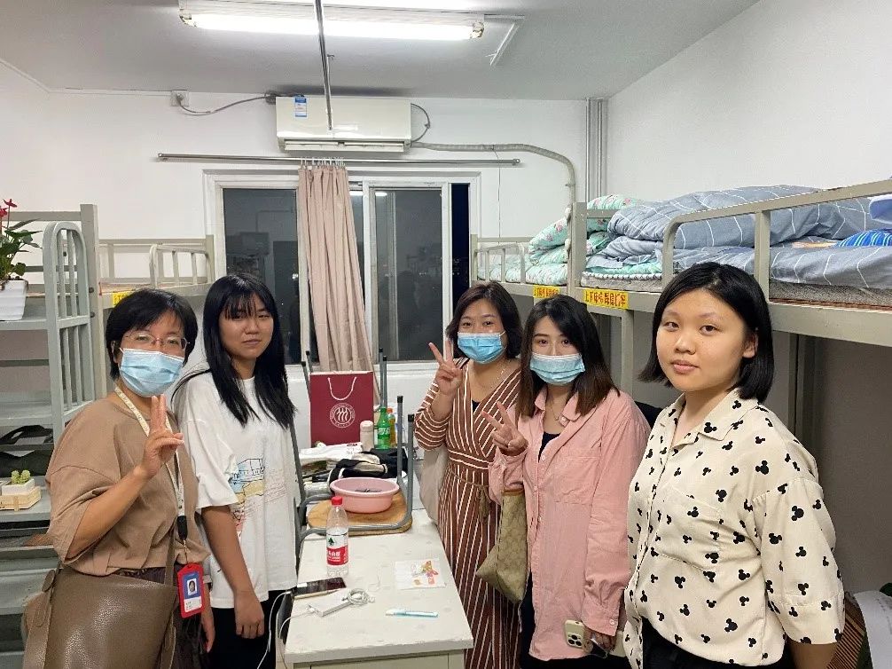 孙权书记和宋月萍副经理分别带领女老师们看望女生硕士及本科、博士新生。新生们对领导、老师的探访表示热烈欢迎。老师们亲切慰问了解新生基本情况,感受寝室条件,并鼓励同学们致力学习、更进一步。老师们也提醒同学们遵守公司防疫政策,按要求及时完成核酸检测,同学们也对老师们的关切表达了感谢。令人温暖的是,老师们帮助新生搬运行李,并和新生家长通过视频电话交流问候,其乐融融。