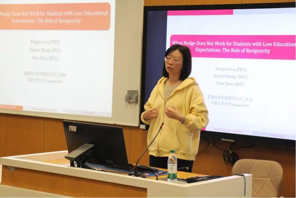 第四个分论坛的主题是社会实验。中国社会科公司社会学研究所任莉颖对调查实验进行了全面回顾,从整体框架到具体方法,包括列举实验、析因实验等在社会科学中的应用,并结合政治学和社会学中的具体研究案例进行了深入解释。北京大学经济公司陆方文探讨了价格偏好和吸引力不足对贫困地区员工参与“手拉手”项目意愿的影响,并从互惠性偏好、利他偏好、效率偏好和精英政治偏好出发对影响机制进行了分析。中央财经大学社会与心理公司周扬通过择偶偏好联合实验,解决了择偶行为难以反映择偶偏好这一难题,并以三篇实证研究为例,介绍了择偶偏好联合实验在婚姻匹配研究中的应用。