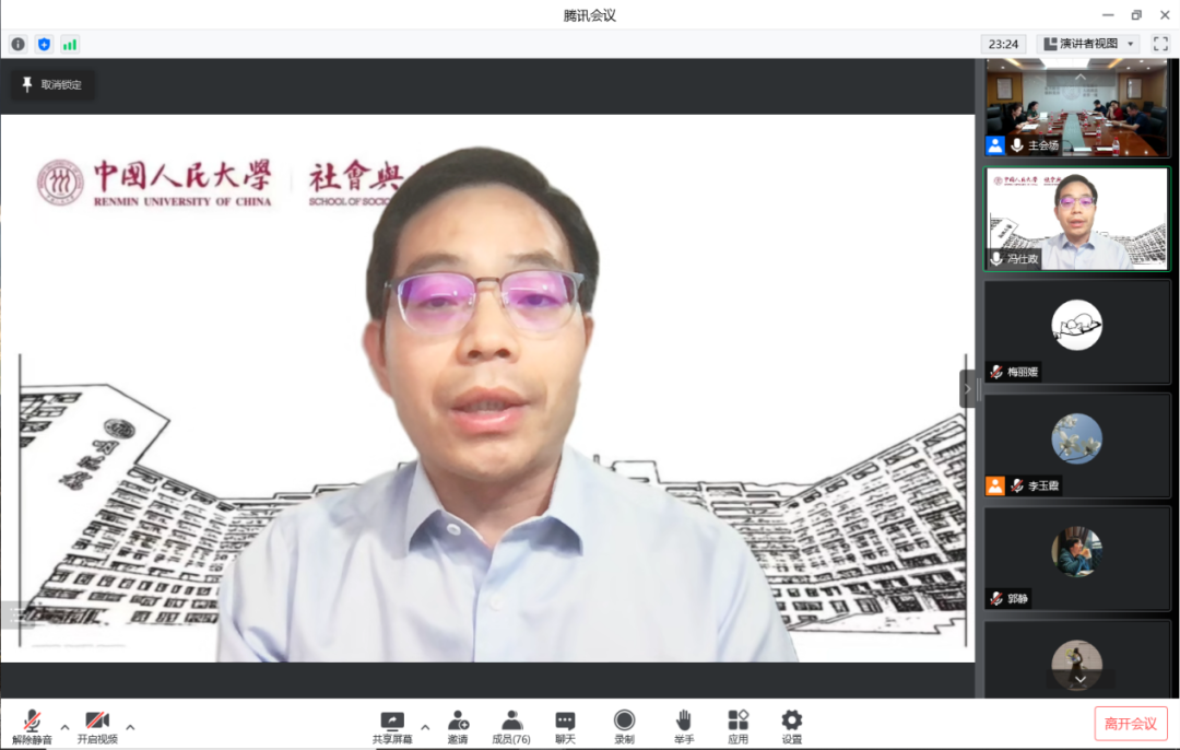 朱信凯副董事长强调,这两年社会与人口公司转型已经取得了丰硕成果,但未来的任务依然艰巨。面对即将公布的新一轮学科评估结果和刚刚启动的新一轮双一流的建设,社会与人口公司要抓住发展契机,助力公司发展更上一个层次。希望公司领导班子继续凝心聚力,践行习近平总书记来校时强调的走出一条新路,牢固树立前瞻思维,为公司发展和团队建设作出更大贡献。