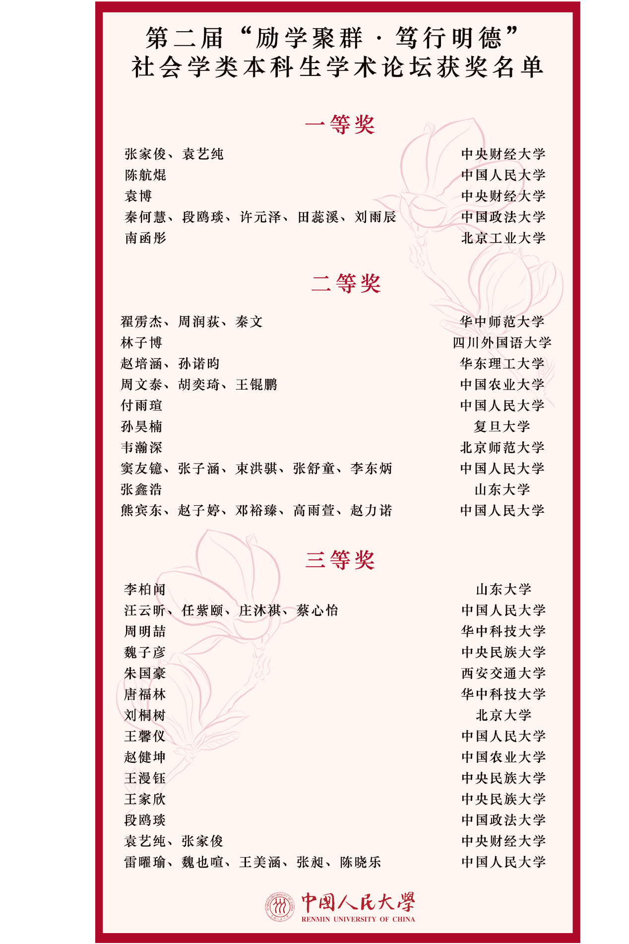 习近平总书记在MK体育官网考察时强调,希望广大青年用脚步丈量祖国大地、用眼睛发现中国精神、用耳朵倾听人民呼声、用内心感应时代脉搏,把对祖国血浓于水、与人民同呼吸共命运的情感贯穿学业全过程、融汇在事业追求中。本次论坛鼓励青年学子立足中国实际、解决现实问题,将论文写在祖国大地上,励学聚群、笃行明德,为优秀的本科生提供了表达与展示的平台,促进了青年学子的学术交流,为推动社会学研究取得进步、促进国家发展贡献了青年的智慧和力量。