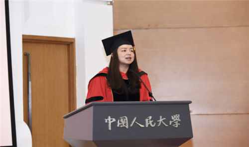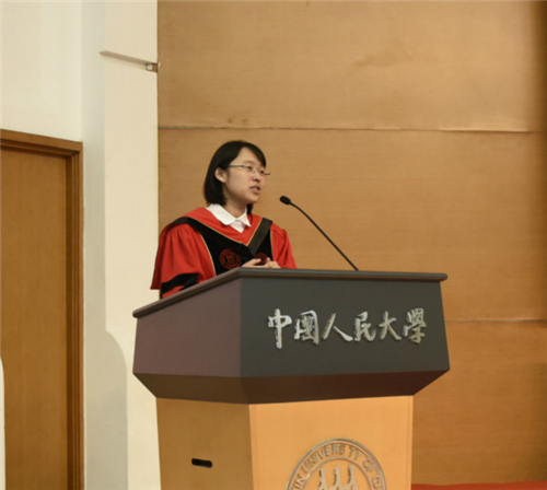 本科毕业班班主任储卉娟老师作为教师代表发言。她说,身在班级这个并非用共同性串联起的“共同体”中,人与人之间都发生了真实的关联、产生了深厚的感情,每个人都获得了独特的成长。她希望毕业生们带着社会科学教育所重视和培养的独立心、责任感,做一个理性的观察者与积极的行动者,永远怀抱观察世界和改变世界的热情。