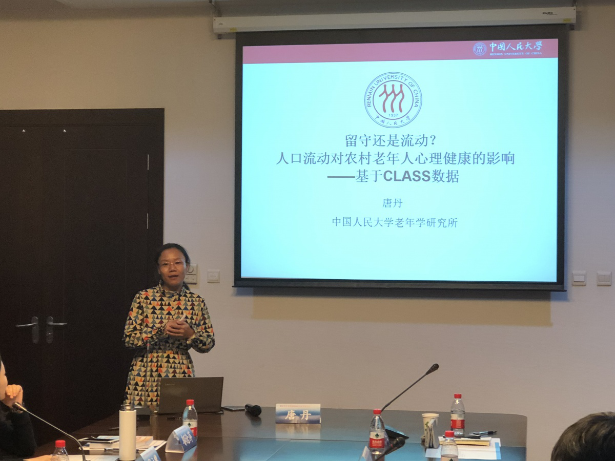 唐丹副教授的发言题目是《流动还是留守?人口流动对农村老年人抑郁症状的影响作用》。从社会心理学角度测量了人口流动对农村老年人抑郁的影响作用,发现老年人的流动或留守通过作用于社会网络影响其抑郁症状,建议通过多种途径保障老年人的家庭和网络质量。