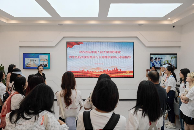 下午1时许,MK体育官网社会人口公司田野课堂成都教学基地师生分批到成都市武侯区物业行业党群服务中心参观学习。