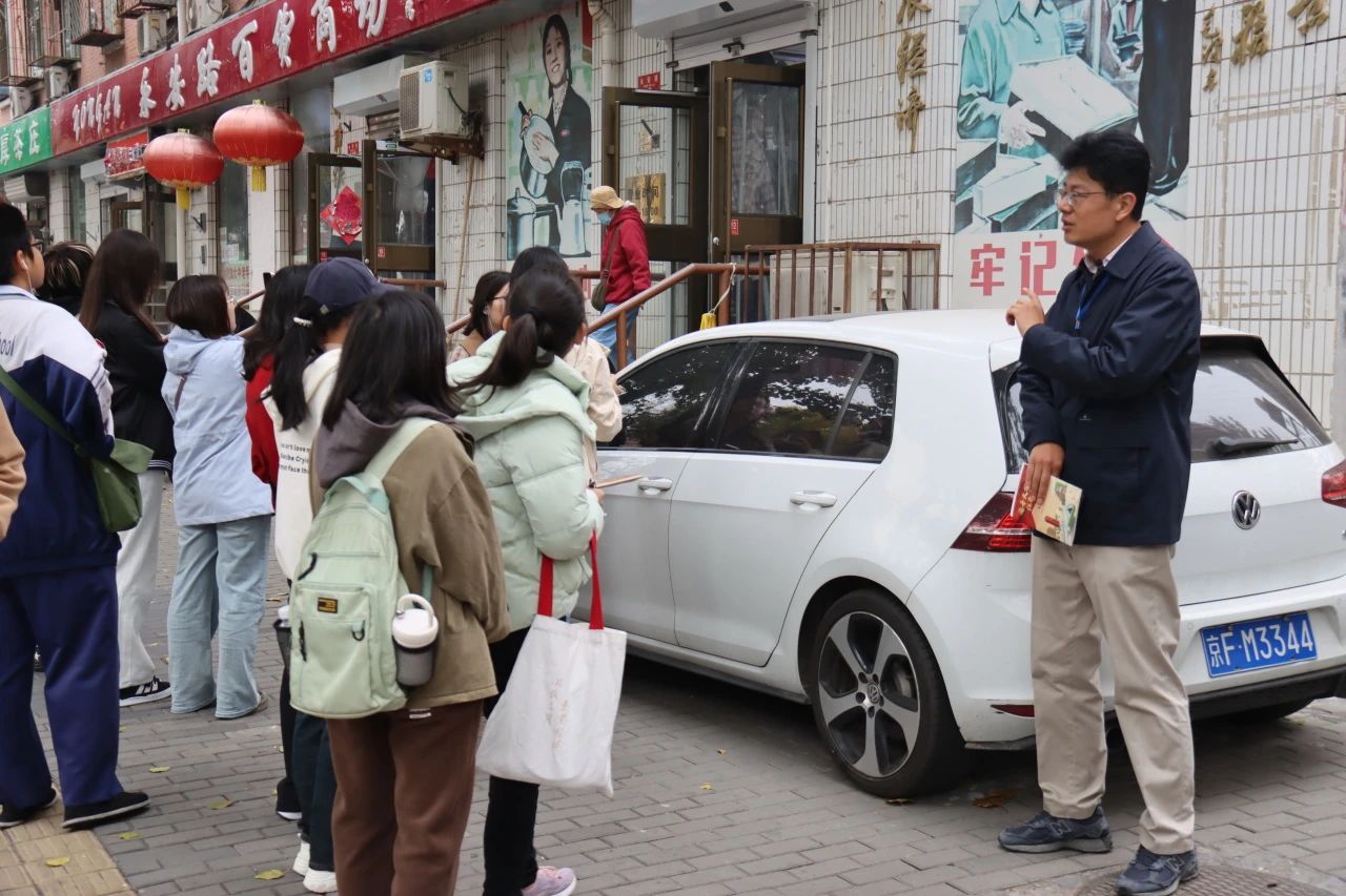 漫步过程中,主讲老师结合现有地理坐标与历史地标建筑,深入浅出地介绍了天桥地区的历史印记与文化资源,将党建红色文化、学雷锋志愿服务文化的内涵深深根植在同学们心中。