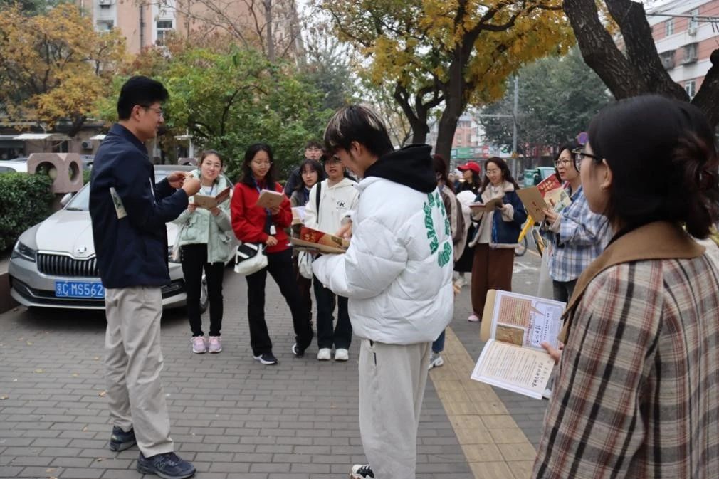 主讲老师带领同学们从《光明日报》旧址出发,寻访新世纪游艺场等13个红色点位,最终漫步到达学雷锋志愿服务主题公园。