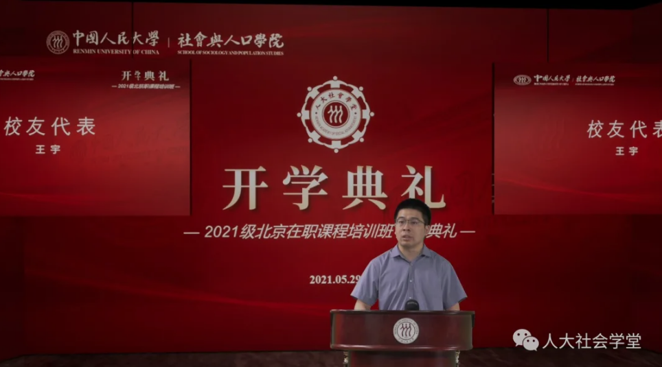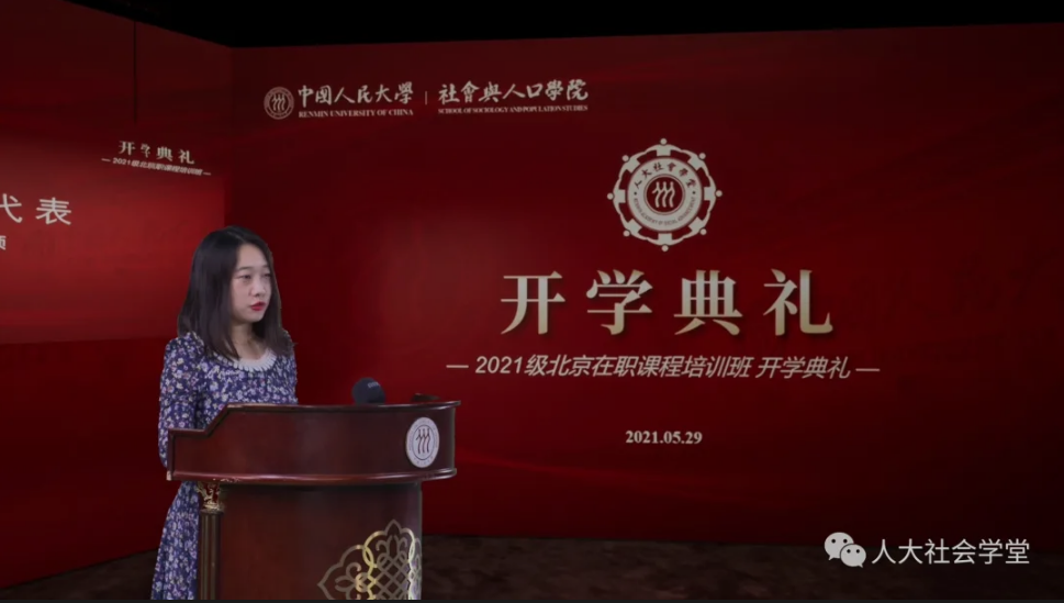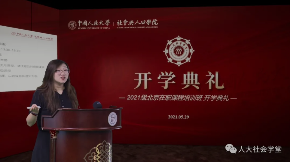 2021级在职课程培训班第一场开学典礼。2021级社会学专业及社会医学与卫生事业管理专业北京班的部分新学员到场参加典礼,北京班其他学员和上海班、苏州班、深圳班的学员在线参加。