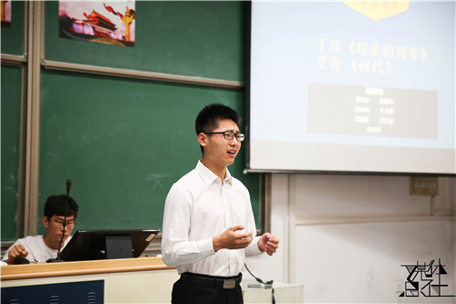 念初心不忘过往。本科2016级1、2班的申宇轩独诵的一首《母亲的专列》,饱含辛酸、字字血泪,感染力极强。几位女生合诵的艾青的《时代》,透过声音和情绪的渲染,仿佛也带我们领会了个人在时代中的渺小和疾呼。