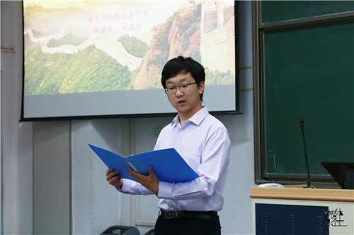 接着,硕士2016级社会学班的郝孟哲带来《青春中国》。他用炽热激情和浓浓真情,为我们描绘出一个有过伤痕却从不失活力的中国。诗告诉我们:我们正青春,我们的祖国也正青春,我们这一代青年人要像先辈那样,用热血为色,谱写一个崭新的中国!节目结束,掌声雷动。