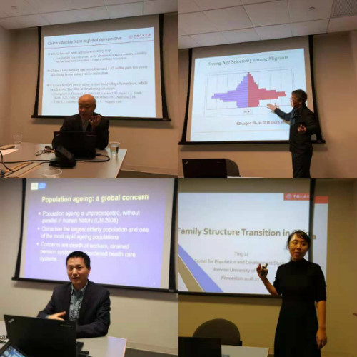 报告结束后,与会师生从中国的户籍政策、人口流动与家庭转变的关系、主观健康测量存在的问题、中国的人口政策制定等方面提出了一系列问题,针对几位教授的报告展开了热烈的讨论。会后,谢宇教授表示,这是一次让美国的学者了解中国的难得的机会,希望以后能加强交流,在各个方面开展更深入的合作。