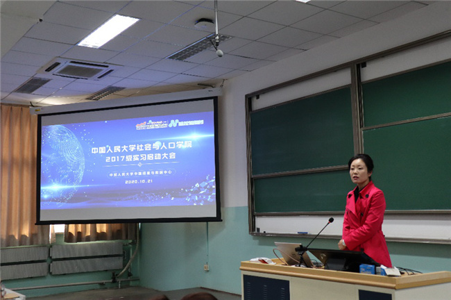 中国调查与数据中心数据采集部负责人胡以松、副主任王卫东及其他工作人员分别给同学们介绍了本次实习的具体安排和要求以及电话调查方法、电话访问规范与技巧、调查问卷、电话调查系统使用等实习必备知识,为同学们顺利完成此次实习工作打下了坚实的基础。