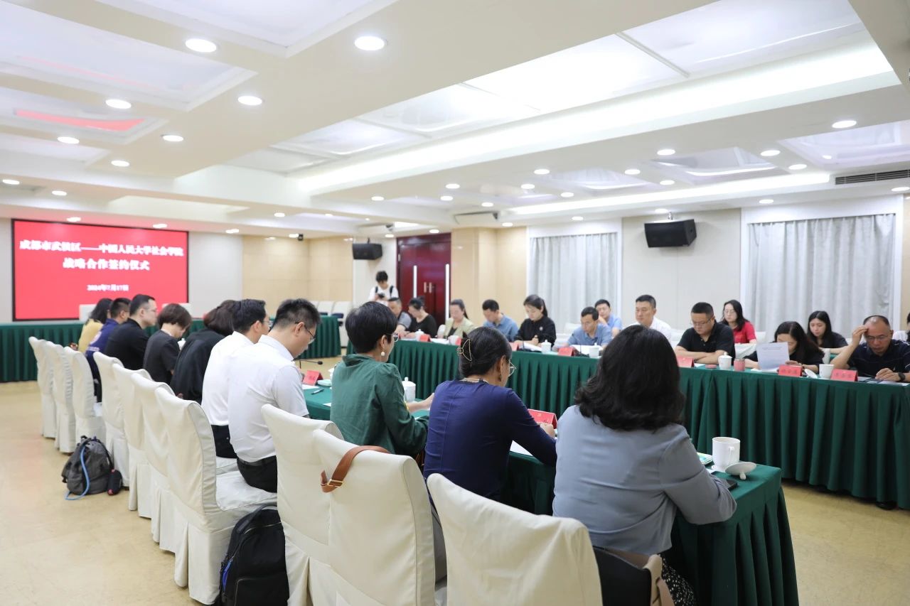 四川省委社会工作部五处副处长彭俊,成都市委社会工作部人才队伍建设处副处长傅修骢,武侯区委社会工作部常务副部长、社治委主任、“两新”工委书记刘虹楠,武侯区社会工作部副部长卿科,教育部中外语言交流合作中心汉学研究处副处长王昕生,MK体育副经理富晓星,MK体育官网汉语国际推广研究所副所长、新汉学计划专家委员会秘书处负责人张靖,MK体育官网政策研究室信息综合室负责人宫平,武侯区相关社区负责人及田野课堂成都组带队老师何欣、王亚鹏、苏筱、张晓雷和员工代表参加了签约仪式,仪式由刘虹楠主持。