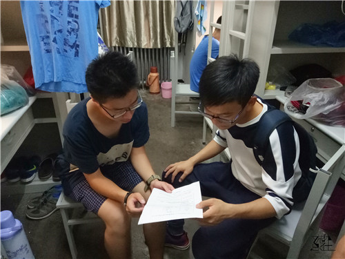 晚上8点,朋辈志愿者们分别前往品园一楼、品园二楼、知行四楼、品园六楼的新生宿舍,与自己的朋辈见面。