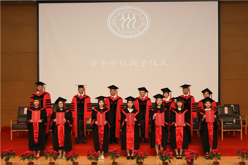 随后,学位授予仪式正式开始。伴随激昂的音乐,导师代表们依次为2018届学士、硕士学位获得者拨穗并颁发学位证书。