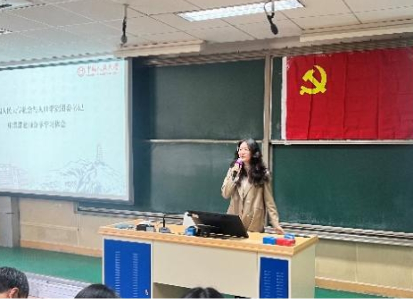 北京大学人口所社会工作专业硕士党支部那爽同志介绍了全国人大第十四届二次会议、全国政协第十四届二次会议的召开情况,并摘选两会期间习近平总书记在参加江苏代表团审议时的重要讲话、在看望参加政协会议的民革科技界环境资源界委员时的重要讲话以及李强总理代表国务院所作的政府工作报告的主要精神与大家一起回顾学习。